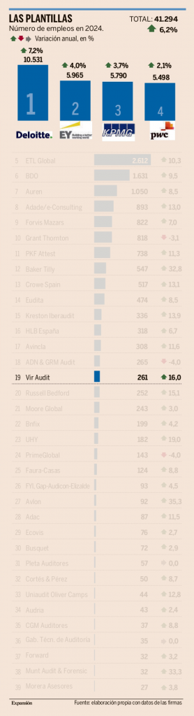 Els rànquings del diari Expansión inclouen l’evolució de la plantilla i la facturació anual de les principals firmes d’auditoria d’Espanya